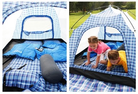 产品特点:双层设计,3根超轻高强度铝合金支架,帐篷支架袖设计,使帐篷防风性能更好;D形门,前后双开门,通透性良好;顶部内架采用支架袖设计,一端封死,另一端采用魔术贴固定,既增强的支架的稳定性,使用也更方便;置身帐篷内给您温馨,舒适的感受,外帐的配色为与印花格子中呼应的蓝色专为家庭休闲,露营设计。