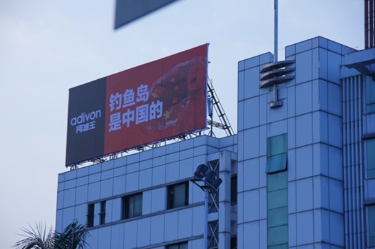 “抢我海岛、撞我渔船、扣我同胞”,日本的野蛮与无知,使得钓鱼岛事件愈演愈烈。国家最高领导人表态了“中国政府在维护领土主权问题上立场坚定不移”;公众人物豪言壮语、公开保钓;普通老百姓纷纷抵制日货、走上街头游行示威;在这场“保钓爱国”行动中,中华民族表现出了高度的团结,向世界展现了中华民族保卫国家领土完整的决心。近日,就有人发现,在泉州至厦门的高速公路上,树立起了一块“钓鱼岛是中国的”的广告牌,醒目的中国红,强劲有力的呐喊,让热血的中国人,为之振奋。据了解,这是在网络上备受争议,素有“山寨之王”之称的品牌adivon刊登的。
